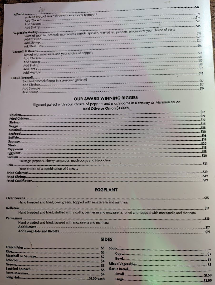 The restaurant's menu boasts a delightful array of dishes that highlight the essence of Italian cuisine. Must-try appetizers include the Eggplant Melanzana, gracefully layered and perfectly seasoned at just $14.56, and the popular Bella Greens for $19.70, a fresh and flavorful starter sure to kick off your meal on a bright note. For the main event, indulge in the renowned Chicken Riggies, a Utica staple, showcasing tender chicken in a zesty sauce that will leave your taste buds longing for more. If you're in the mood for something rich and hearty, the Lasagna or the savory Chicken Parm over Rigatoni are brilliant choices that are made to please both the eye and palate.